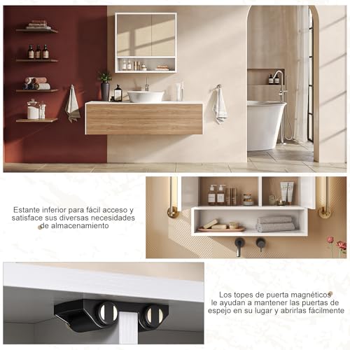 SIMPLE HOGAR - خزانة حمام من سيمبل هوجار، خزانة أدوية بمراية للحمام، أثاث حمام مكون من 3 طبقات، مراية حمام بحامل يثبت على الحائط وتضمن سهولة تخزين مستلزمات الحمام (لون أبيض)