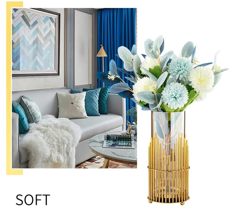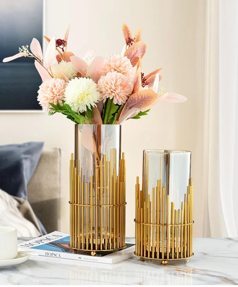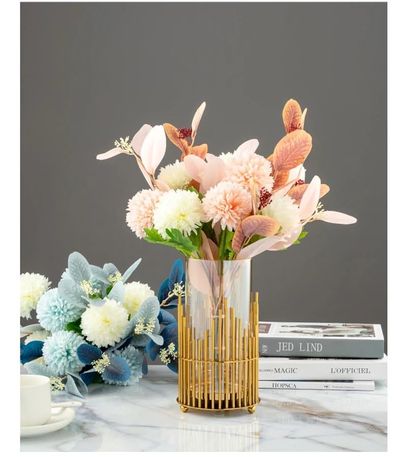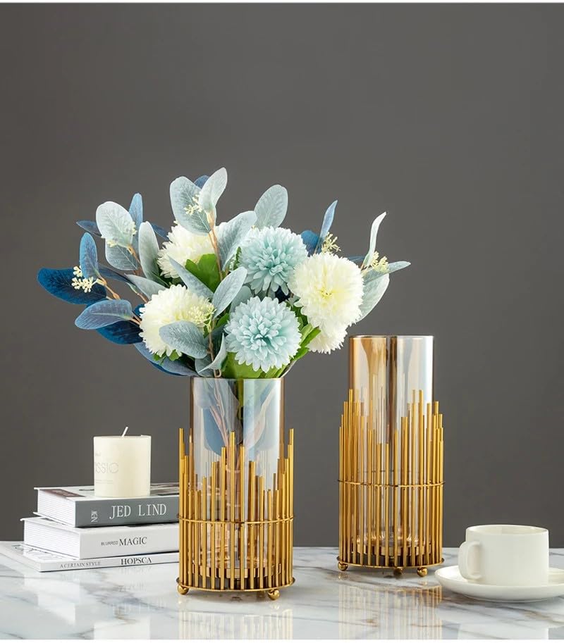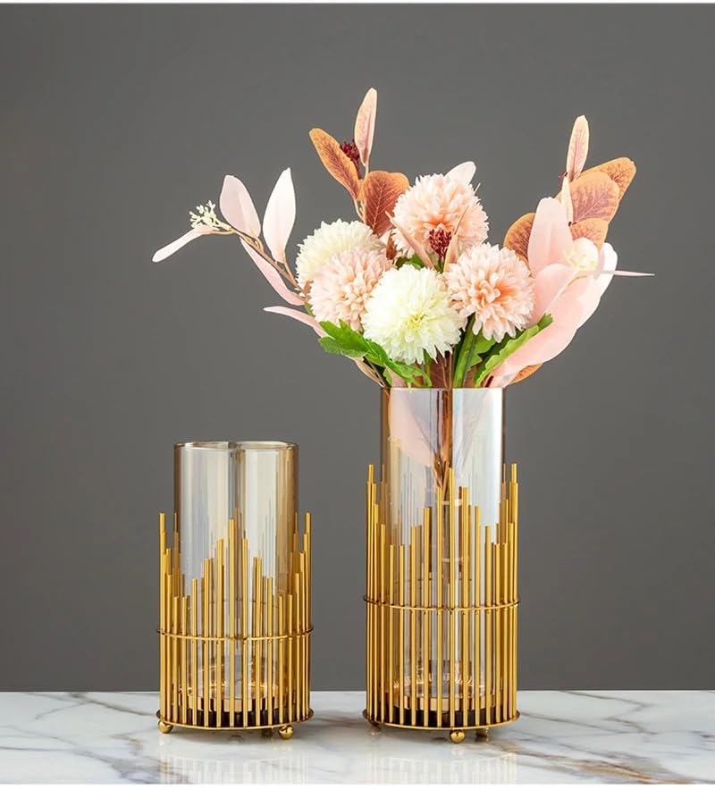 Generic - مزهريات زجاجية معدنية بسيطة لغرفة المعيشة وترتيب الزهور المجففة الخفيفة الفاخرة طاولة الطعام الحديثة مزهرية زجاجية شفافة ذهبي