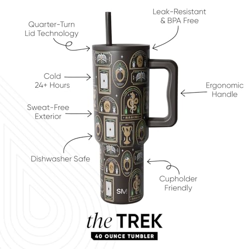 Simple Modern - سيمبل مودرن كوب هاري بوتر بسعة 40 اونصة مع مقبض وغطاء بماصة | زجاجة مياه معزولة قابلة لاعادة الاستخدام من الستانلس ستيل للسفر | هدية للنساء والرجال | مجموعة تريك | 40 اونصة | دارك ارتس