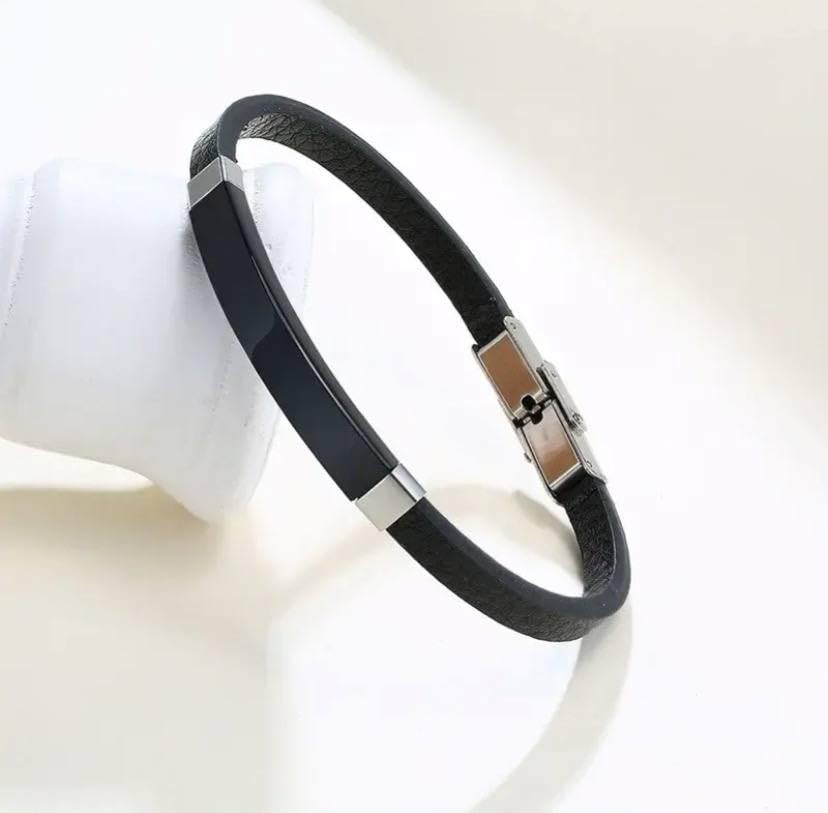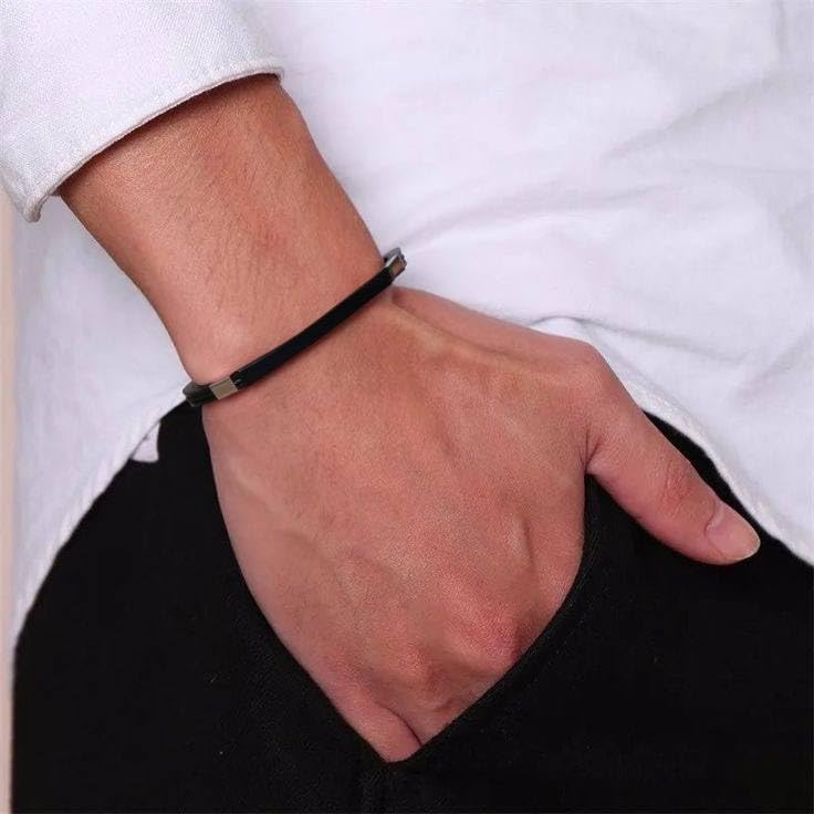 Generic - سوار جلدي اسود للرجال بتصميم بسيط كلاسيكي من الستيل المضفر هدية للاصدقاء