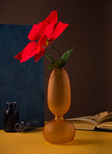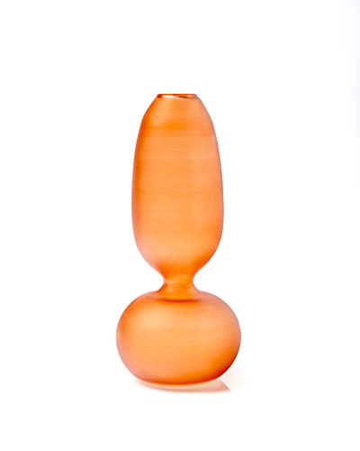 Ornamenta - مزهرية للزهور والنباتات زجاجية لرف الطاولة العصري وديكور المنزل وحفلات الزفاف، مزهرية زجاجية برتقالية أنيقة بلورية 8 اتش، مزهرية زجاجية برتقالية لعشب البامباس المنفوش، قطعة مركزية لتزيين الطاولة