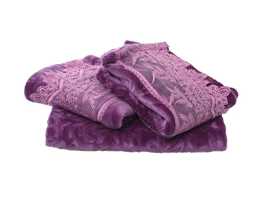 Egyptian Textile - مفرش سيمبل قطيفة جوبير، 1 مفرش مقاس 190235 + 2 خدادية مقاس 5570 + 1 مخدة مقاس 50*160، "موف" - 17173