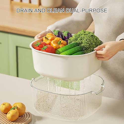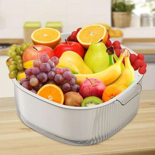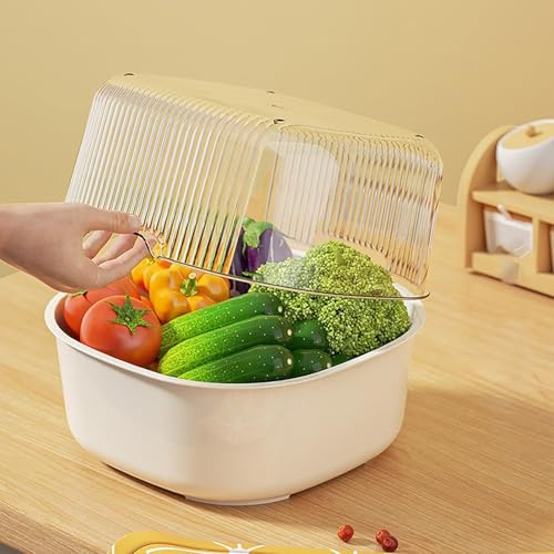 - نظام مصفاة دوار ذكي: يتميز الوعاء بتصميم داخلي متحرك يتيح لكِ غسل وتصفية الخضروات والفاكهة بسهولة تامة مع ضمان عدم سقوط الطعام أثناء سكب المياه.