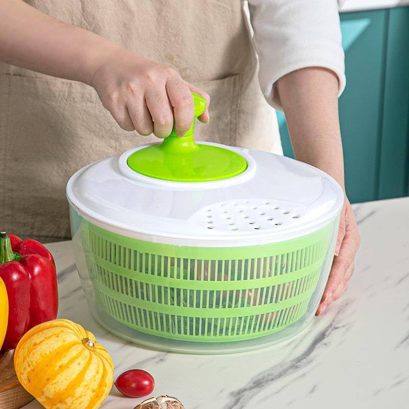 - 💪 جودة ومتانة عالية: مصنوع من خامات قوية وآمنة للطعام، مع آلية دوران سهلة الاستخدام تضمن تجفيفاً سريعاً وفعالاً لكل أنواع الخضروات الورقية.