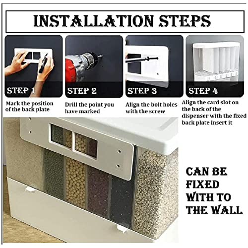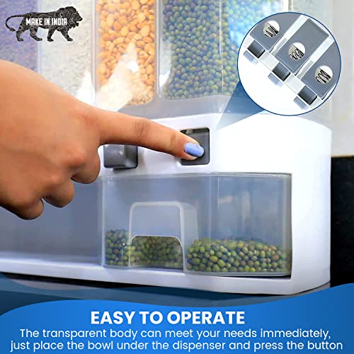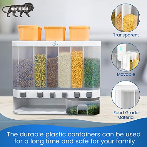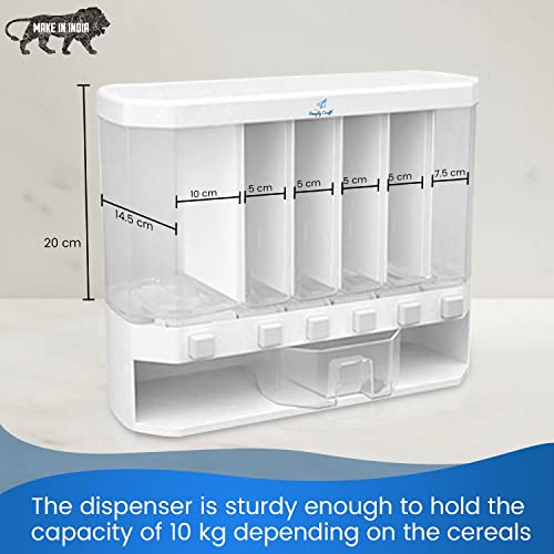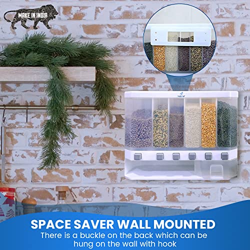 SimplyCraft - موزع حبوب يثبت على الحائط للمطبخ من سيمبلي كرافت | صنع في الهند | حاوية توزيع بسعة 10 كجم | قهوة ارز دال وتخزين جاف. 6 شبكات