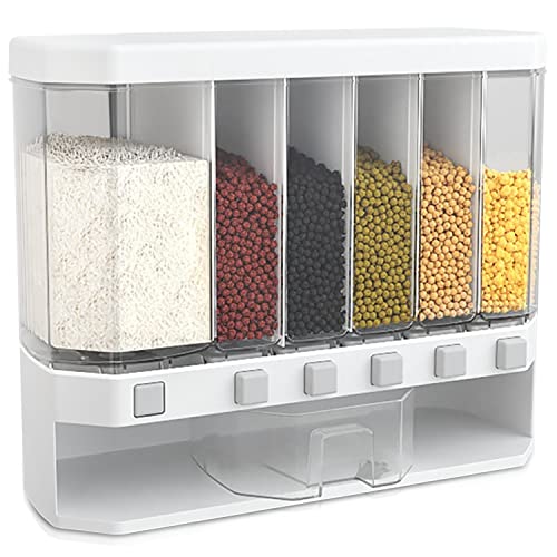 - موزع حبوب 6 شبكات للمطبخ: موزع حبوب لتخزين الحبوب يومياً باستخدام الحبوب والأرز والحبوب والبقول وحبوب القهوة