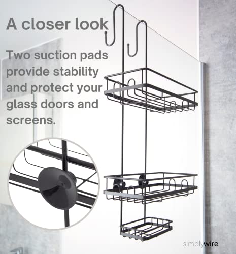 simplywire - منظم أدوت حمام قابل للتعليق مع رفوف تخزين مقاومة للصدأ من سيمبلي واير، أسود