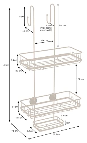 - موفر للمساحة: مساحة واسعة بين السلال تسمح بتخزين الشامبو والبلسم والصابون والجل بشكل عمودي. تتيح لك الخطافات الجانبية تعليق الإسفنجات وماكينات الحلاقة والليفة وأدوات الاستحمام.