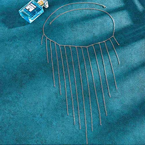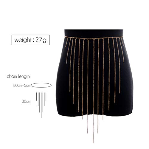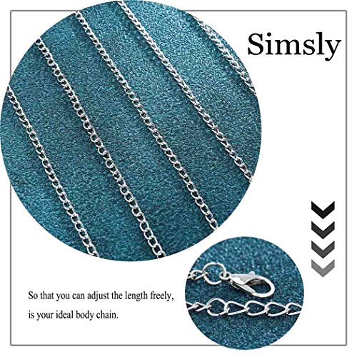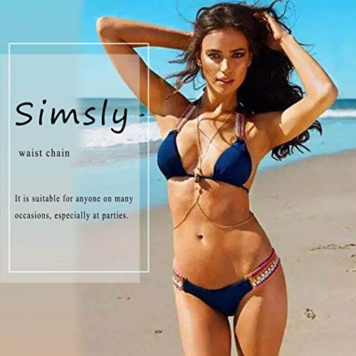 Simsly - سيمسلي سلسلة خصر بشراشيب للشاطئ، سلسلة بطن للجسم، اكسسوارات مجوهرات فضية او ذهبية للنساء والفتيات (فضي)