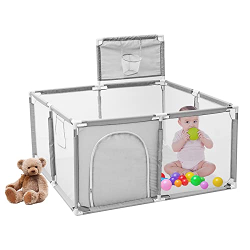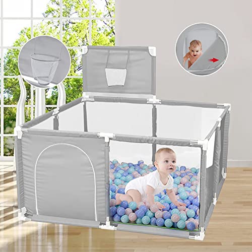 Sinbide - ساحة لعب للأطفال من سينبايد، ساحة لعب قابلة للإزالة والغسل، مركز أنشطة للأطفال، ساحة لعب كبيرة مناسبة للاستخدام في الأماكن المغلقة والمفتوحة مع شبكة واقية (128 × 128 سم، رمادي)