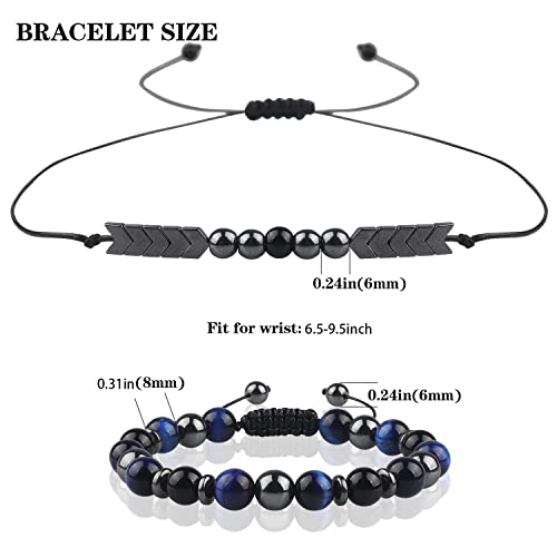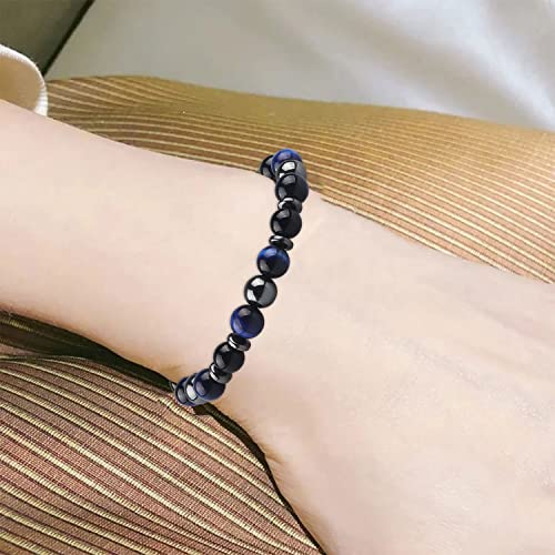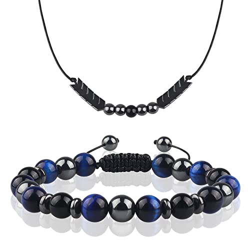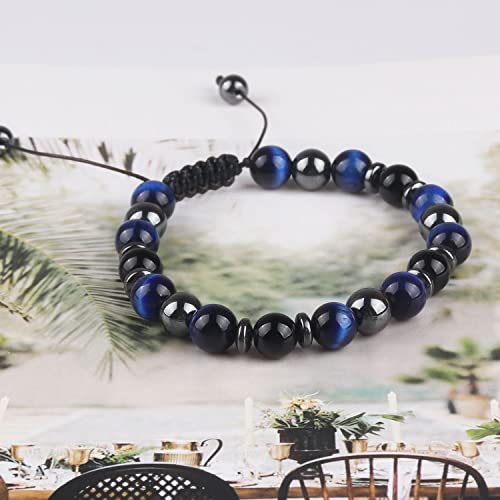 SINCSEFK - مجموعة اساور حماية ثلاثية للجنسين (نمر ازرق، زجاج بركاني، حجر الدم)