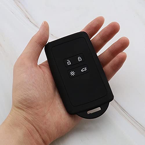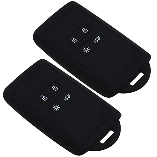 SING F LTD - سينغ اف ال تي دي قطعتان من غطاء مفتاح التحكم عن بعد للسيارة متوافق مع رينو ميجان كليو كابتور 4 ازرار السيارة الذكي فتحة مدمجة سيليكون اسود اكسسوارات