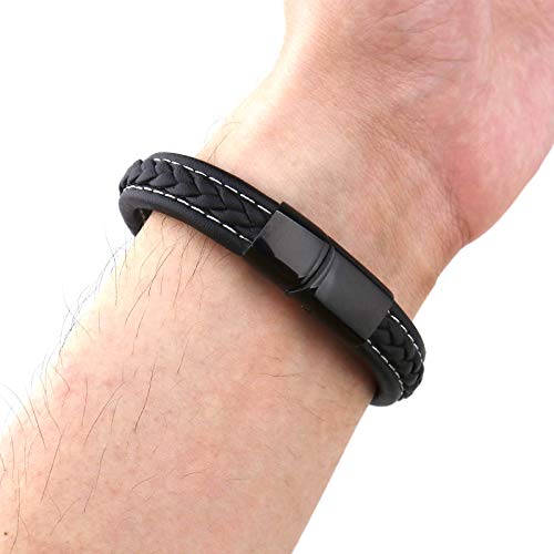 SING F LTD - سوار من الجلد الصناعي سينج اف ال تي دي بنمط مضفر بالمغناطيس ومدمج بمشبك الستانلس ستيل مقاس 8.66 بوصة للرجال والنساء 8.66 inches ستانلس جلد صناعي