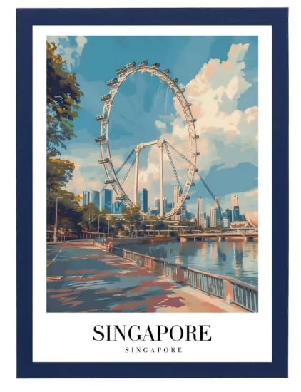 - عمل فني فاخر: طباعة مذهلة لمنظر المدينة تتميز بعجلة مراقبة فلاير الشهيرة في سنغافورة على خلفية من ناطحات السحاب الحديثة ومناظر الواجهة البحرية
