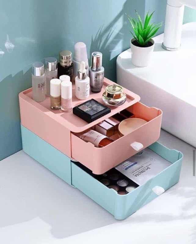 Generic - درج واحد مه مقبض سيليكون متعدد الطبقات، علبة لتخزين الأدوات المكتبية والمجوهرات والمكياج ومناسبة للحمام والمكتب، عبوة من 1 قطعة - لون عشوائي، لون (2)