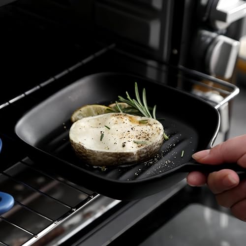 - يتميز السطح السفلي لأواني الخبز بتخفيف متدرج مخطط يقوم بتصفية الزيت الزائد من الطعام، مما يساعد على تحسين المذاق وتعزيز تناول الطعام الصحي عن طريق تقليل تناول الدهون، وجعل التنظيف أسهل بسبب اللمسة النهائية المصقولة الناعمة.