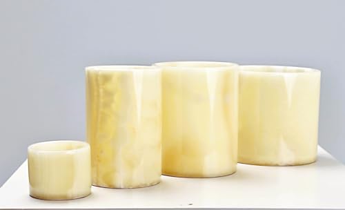 - أناقة قوية: مصنوعة من المرمر المتين، توفر حوامل الشموع هذه تصميمًا صلبًا يدوم طويلاً وقوي وجذاب. مثالية لتقديمها كهدية جميلة وقيمة يضفي أجواءً رومانسية ودافئة. مصنوع من حجر طبيعي الأباستر يهدئ الأعصاب ويعزز فخامة ديكورك بلمسة راقية.