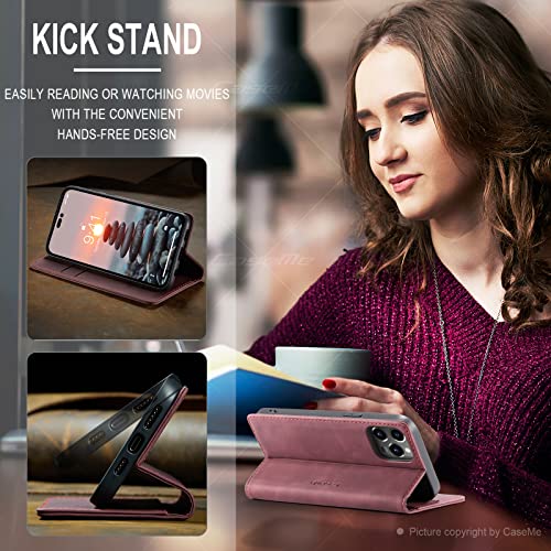 SINIANL - جراب حماية جلد صناعي بتصميم محفظة قابلة للطي مع حامل بطاقات ومسند وقفل مغناطيسي لموبايل ايفون 14 برو ماكس مقاس 6.7 بوصة اصدار 2022 من سينيانل بلون احمر واين