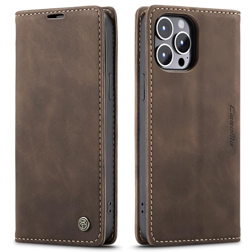 SINIANL - جراب جلدي لموبايل ايفون 15 برو ماكس من سينيانل حماية قابل للطي مع مسند مغناطيسي وفتحات للبطاقات لون كافيه بني