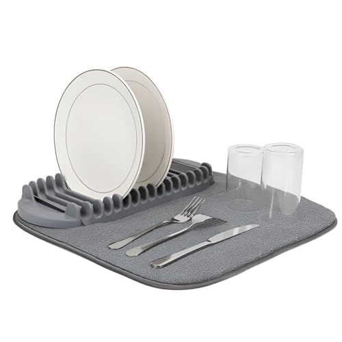 Generic - مجموعة تجفيف الحوض - بساط فائق الامتصاص ورف ثنائي يوفر حلاً صحيًا للتجفيف ويحمي أسطح الطاولات ويعزز كفاءة المطبخ وقابل للغسل وسريع الطي وإعادة الاستخدام طوال الأيام المزدحمة