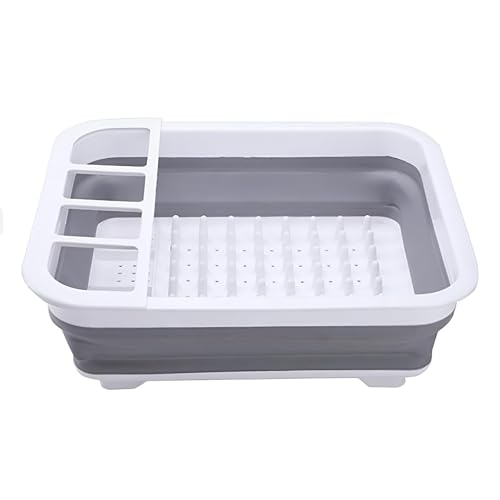 Generic - منظم حوض وقاعدة تجفيف قابلة للتحويل برف قابل للطي، صينية تصريف بسطح مطلي بالسيليكون بلونين رمادي وأبيض، لتجفف أدوات المائدة والأطباق والأكواب الزجاجية وزجاجات الأطفال بكفاءة