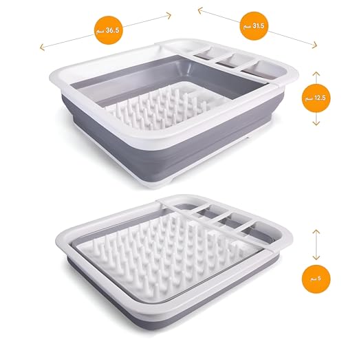 - سهل الاستخدام ومتعدد الاستخدامات: يناسب الرف بشكل مثالي أحواض المطبخ أو مساحات الكارافان وهو مناسب للتخييم والسفر؛ الأبعاد الكاملة هي 12.5 × 35.5 × 31.5 سم، مع حجم مطوي 5 × 35.5 × 31.5 سم للتخزين المدمج.
