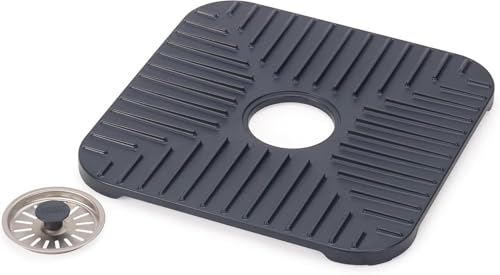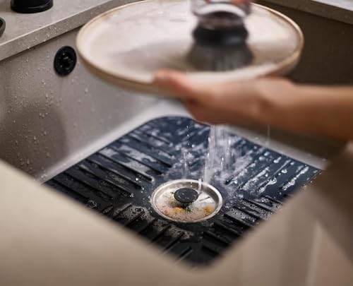 Generic - بساط تصريف للحوض مع سدادة تصريف يحمي الحوض والأكواب والأطباق بسدادة قابلة للإزالة لتصفية المياه غير قابل للانزلاق لتصريف سريع