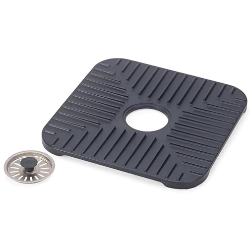 Generic - بساط واقي للحوض - بساط سيليكون مرن ورفيع للغاية مع سدادة تصريف، يحمي الحوض من الصدمات، ويمنع الانزلاق، ويجف بسرعة لنظافة المطبخ اليومية.