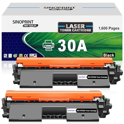 SINOPRINT - خرطوشة حبر M203dw متوافقة مع اتش بي CF230A 30A مع رقاقة بديلة لطابعة اتش بي ليزر جيت برو M203dw M203dn M203 MFP M227fdw M227sdn M227 sdn M203 M227fdn CF230X 30X (عبوتان، اسود)