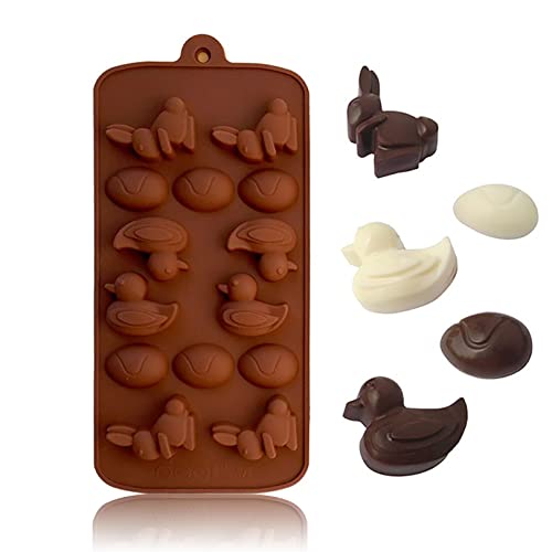 sinyea - قوالب سيليكون 14 تجويف مقاومة للالتصاق لعمل بيضة عيد القيامة والارنب والشوكولاتة والحلويات ومكعبات الثلج والصابون، اداة يدوية لمستلزمات صناعة المخبوزات