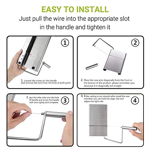 sinzau - قطاعة الجبن من الستانلس ستيل لتقطيع الجبن الصلب وشبه الصلب والزبدة النقانق، 5 اسلاك متضمنة من سينزاو
