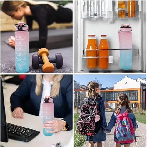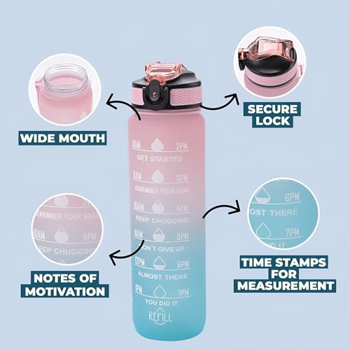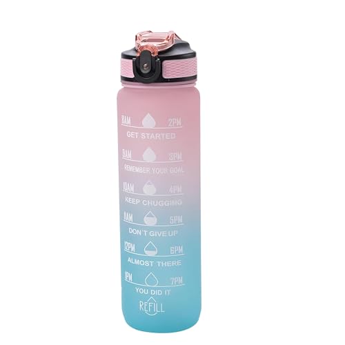 Generic - زجاجة مياه من سيبر - حاوية شرب تحفيزية سعة 1 لتر مع تتبع الوقت للاطفال والكبار، مزودة بماصة لصالة الالعاب الرياضية والمكتب والمنزل والمدرسة، الوان بينك وازرق