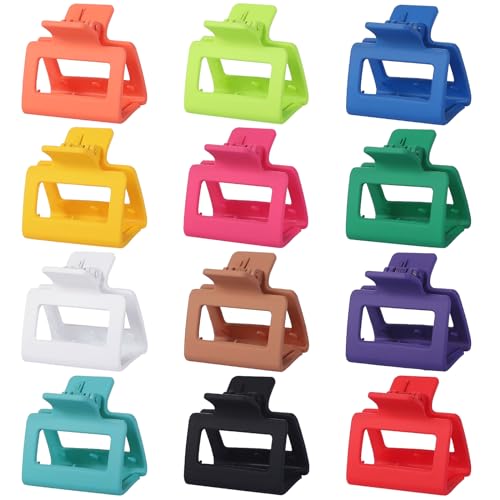 Sisiaipu - مشابك شعر متوسطة الحجم 2 انش 12 قطعة من مشابك الشعر المربعة للشعر الرقيق غير اللامع غير القابل للانزلاق من الاكريليك على شكل موز، اكسسوارات شعر كبيرة للنساء والفتيات - دوبامين