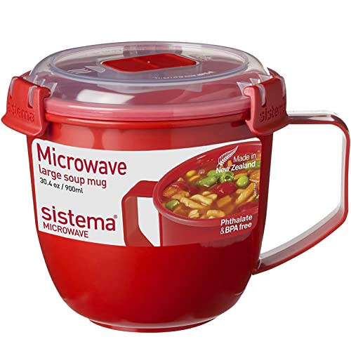 Sistema - مج شوربة كبير للميكرويف من سيستيما 1141، 30.4 اونصة، احمر