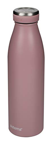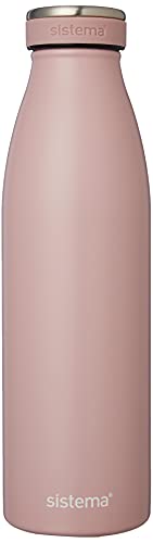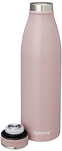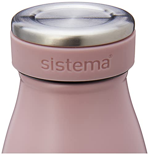 Sistema - زجاجة من الستانلس ستيل سعة 500 مل مضادة للتسرب وخالية البيسفينول ايه والفثالات وقابلة لاعادة الاستخدام بعزل مزدوج سيستيما تحافظ على البرودة لمدة 12 ساعة والحرارة 6 بينك زهري