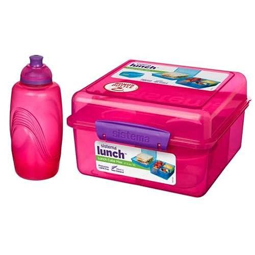 Sistema - حافظة طعام من سيستيما، 2 لتر + زجاجة مجانية- زهري