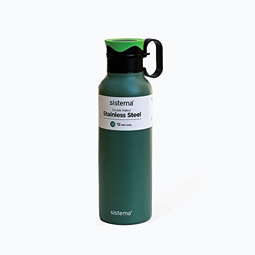 Sistema - قارورة ترافيرس من الستانلس سيستيما، 600 مل - لون أخضر و أسود، ستانلس ستيل