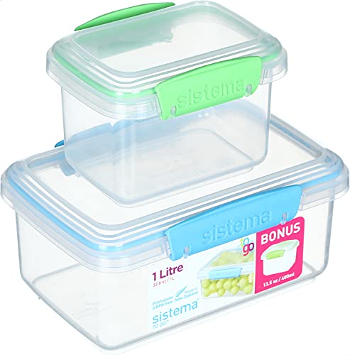 Sistema - مجموعة علب حفظ طعام تو جو من سيستيما، قطعتين، 1 لتر / 400 مل - ازرق واخضر- 5857/82642