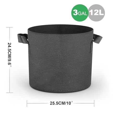 Sitayakuma - أكياس نباتات البطاطس سعة 12 لتر مع مقابض، مناسبة للطماطم والبطاطس والفراولة ونباتات الخيام الأخرى سعة 3 جالون، عبوة من 5 قطع (أسود) من سيتاياكوما