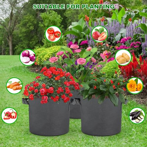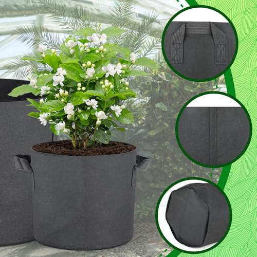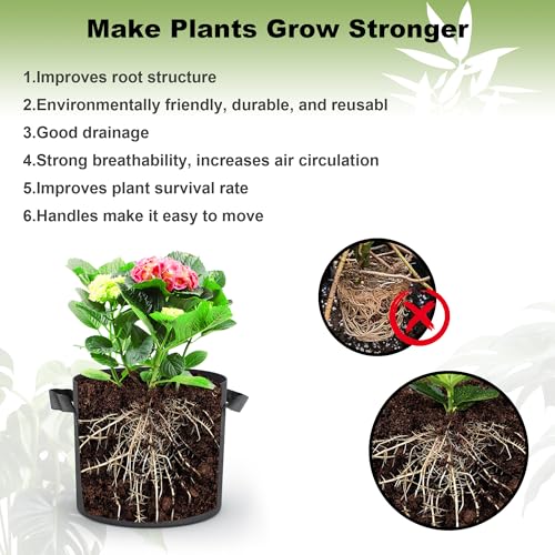 - مواد وتصميم عالي الجودة يتضمن 5 قطع من أكياس نمو النباتات سعة 12 لتر مصنوعة من قماش متين غير منسوج مع تهوية جيدة، مما يضمن دوران الماء والهواء الأمثل وتعزيز نمو النباتات الصحي.