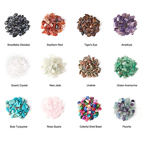 - ✿ المادة: مصنوعة من 12 نمط من خرز الأحجار الكريمة، بما في ذلك: العقيق + يوناكايت + فيروز صناعي + الجمشت + الكوارتز + عين النمر + اليشم + أفينتورين أخضر + زجاج بركاني بشكل ندفة الثلج + فلوريت + خرز صدفي؛ قلادات بنمط تبتي من خليط معدني؛ مشابك حلقان نحاسية؛ كماشة برأس مدبب من صلب كربوني؛ خيط أستك كريستالي.