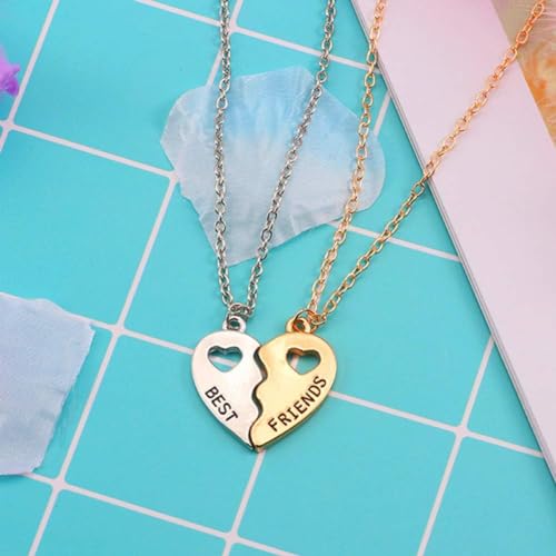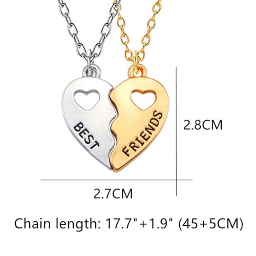 SIVITE - سلسلة بدلاية للتعبير عن الصداقة علي شكل قلب مقسوم بتصميم عبارة Best Friends من قطعتين بلون ذهبي وفضي سيفايت معدن الأولاد للنساء بنات