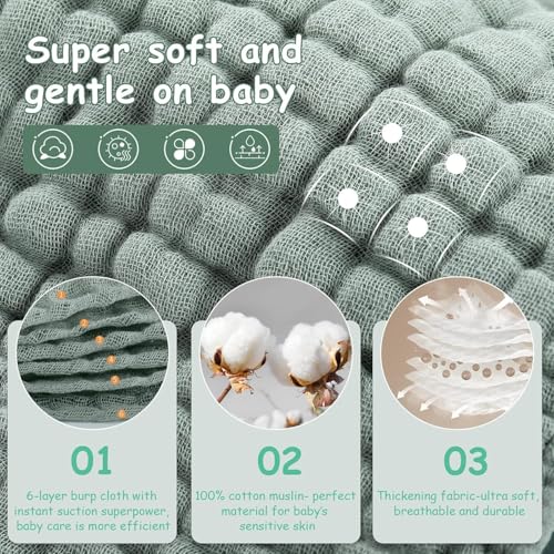 - شاش قطني فاخر من ست طبقات: مصنوعة من مادة قطنية ناعمة وجيدة التهوية مع ست طبقات لامتصاص فائق وراحة أثناء الاستحمام وغسل الوجه والاستخدام اليومي