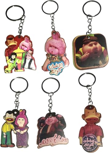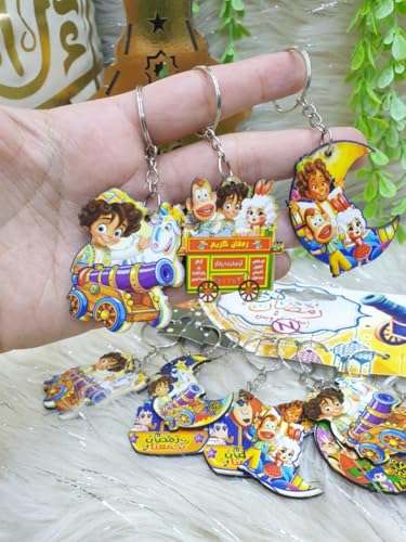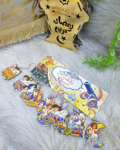 generic - ميدالية مفاتيح خشبية لشهر رمضان، ميدالية مفاتيح خشبية بتصميم شخصية صغيرة قابلة للتجميع - هدية ممتعة للاولاد والبنات زينة رمضان - ميدالية مفاتيح خشبية باشكال رمضان المبهجه - 6 قطع