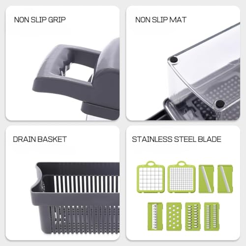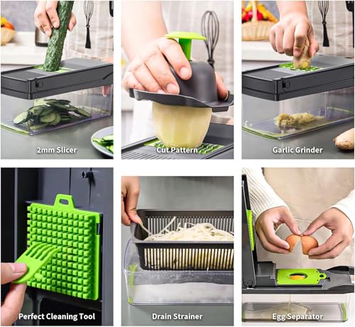 - ✅【قطاعة خضار متعددة الوظائف】تجمع هذه القطاعة 16 في 1 كل أدوات التقطيع والبشر في جهاز واحد صغير الحجم، مما يتيح لك تحضير الخضار والفواكه والبطاطس بسهولة ودقة، ويوفر الوقت والجهد ويجعل كل وجبة منزلية صحية ولذيذة دون الحاجة لاستخدام أدوات مطبخ متعددة أو معقدة. 🏡