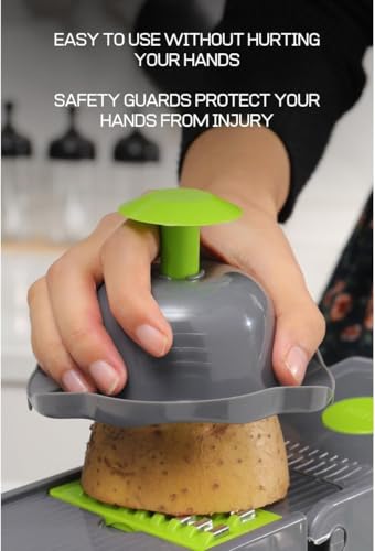 - ✅【سهولة وأمان الاستخدام】مزودة بمقابض مريحة تمنع الانزلاق أثناء التقطيع وتوفر أمانًا كاملاً لليدين، مما يجعل القطاعة مناسبة لجميع أفراد العائلة بما في ذلك المبتدئين، مع سهولة السيطرة والتحكم الكامل أثناء تجهيز الخضروات والفواكه والبطاطس يوميًا 🔪.