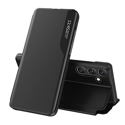 SIYOPINPFY - جراب حماية ذكي مع حامل من الجلد الصناعي، جراب واقي مضاد للصدمات لموبايل سامسونج جالاكسي S25 شبكة الجيل الخامس 5G للجنسين من سيوبينبي، أسود