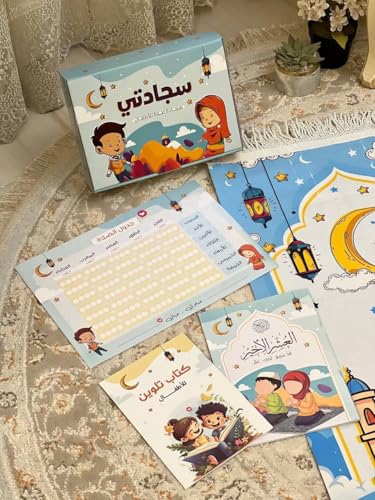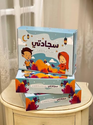 Generic - صندوق هدايا سجادة صلاة للاطفال من سجاداتي - مجموعة تعليمية اسلامية للاطفال مع سجادة مخملية وجوز اما وقاد سامية وتبارك وكتاب تلوين وجدول صلاة (تصميم للاولاد والبنات)
