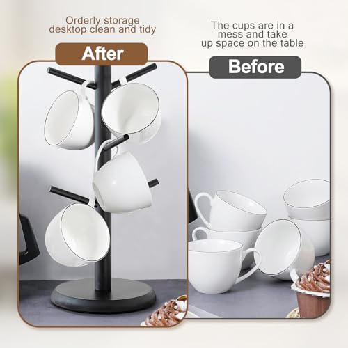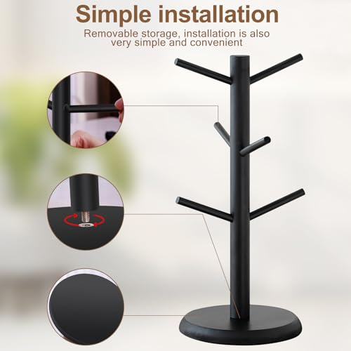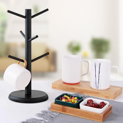 SJORHNUS - حامل اكواب من سجورهنوس، رف اكواب قهوة من الخيزران مع 6 خطافات، حامل اكواب على شكل شجرة للمكتب والمطبخ والمقهى وديكور سطح الطاولة (اسود)