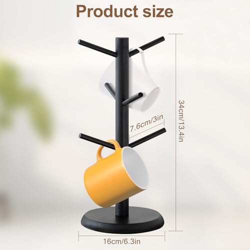 - المقاس: يبلغ قطر قاعدة المنظم 6.15 انش وارتفاعها الإجمالي 13.8 انش. الخطافات متباعدة بمقدار 3.54 انش لحمل ما يصل إلى 6 أكواب أو أكواب.